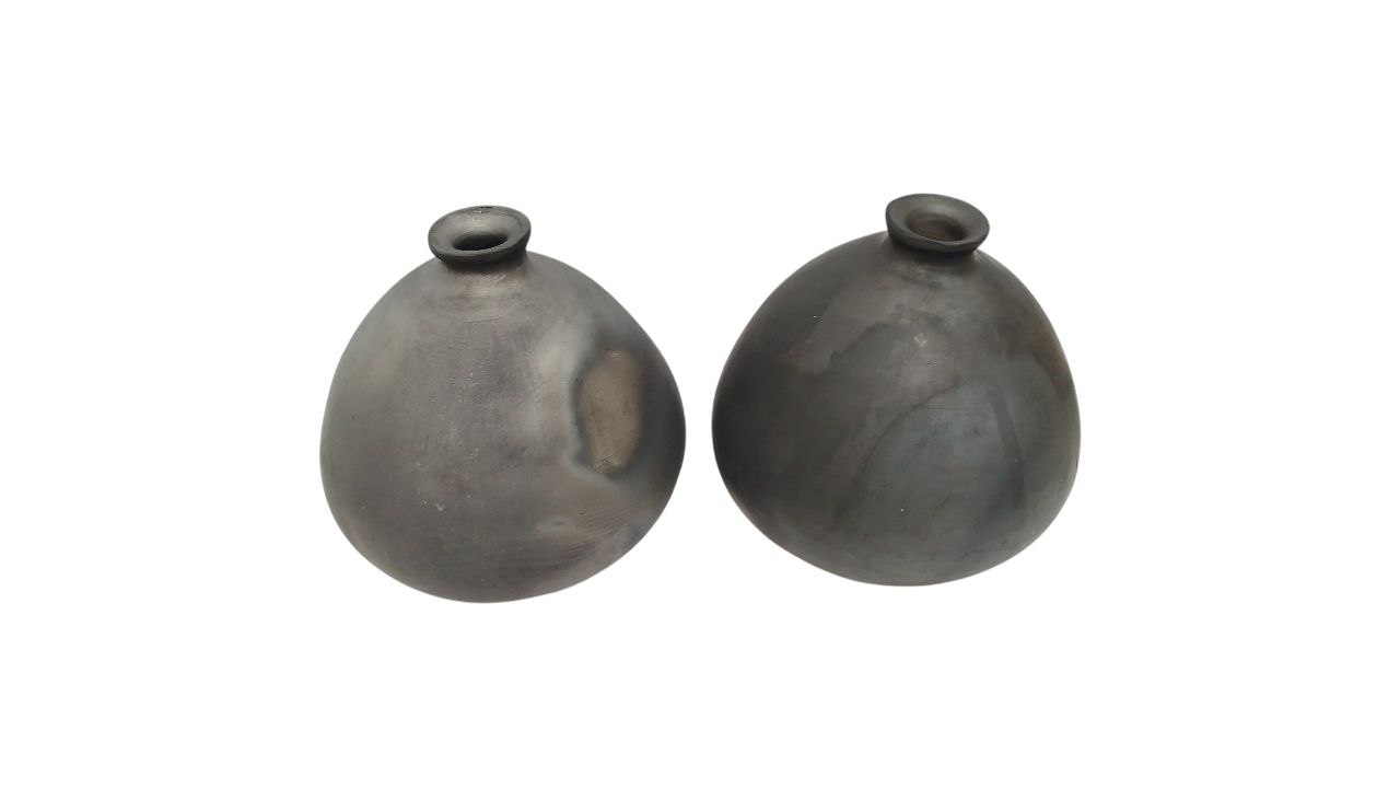 PAR DE ANFORAS RUSTICAS DE BARRO NEGRO CON TONALIDADES GRISES MATE (14CM), ARTESANÍAS, OAXACA