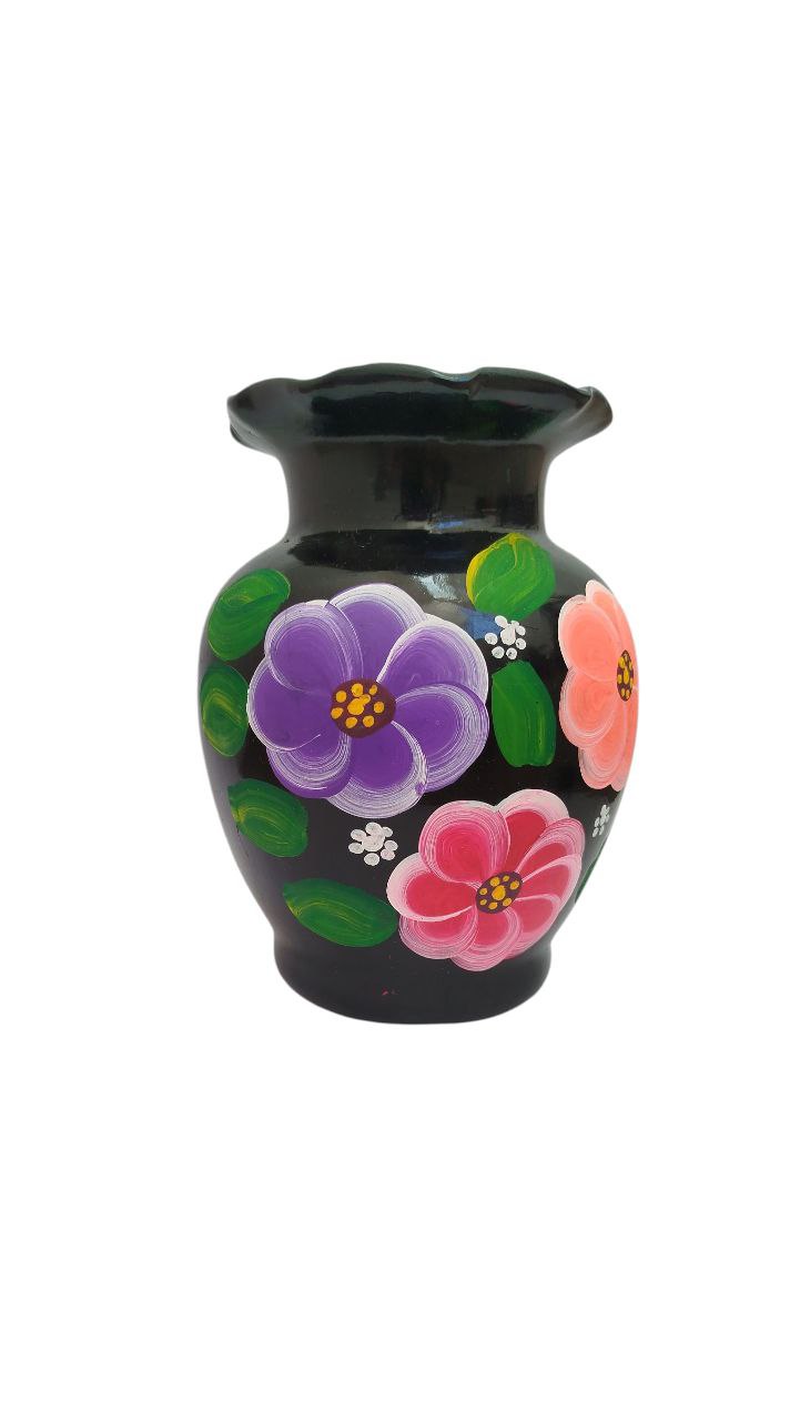 FLORERO ARTESANAL RUSTICO SENCILLO, PINTADA A MANO (21 CM),DISEÑO MEXICANO, HECHO A MANO EN OAXACA, ARTESANÍAS