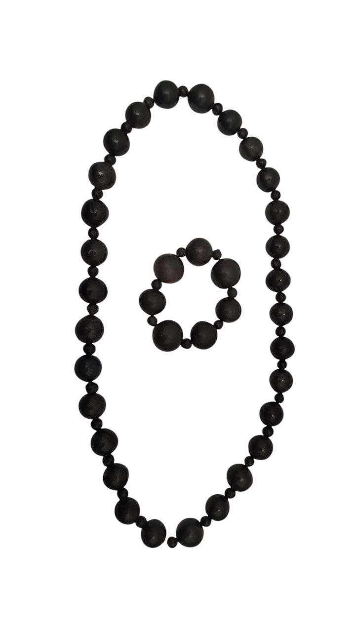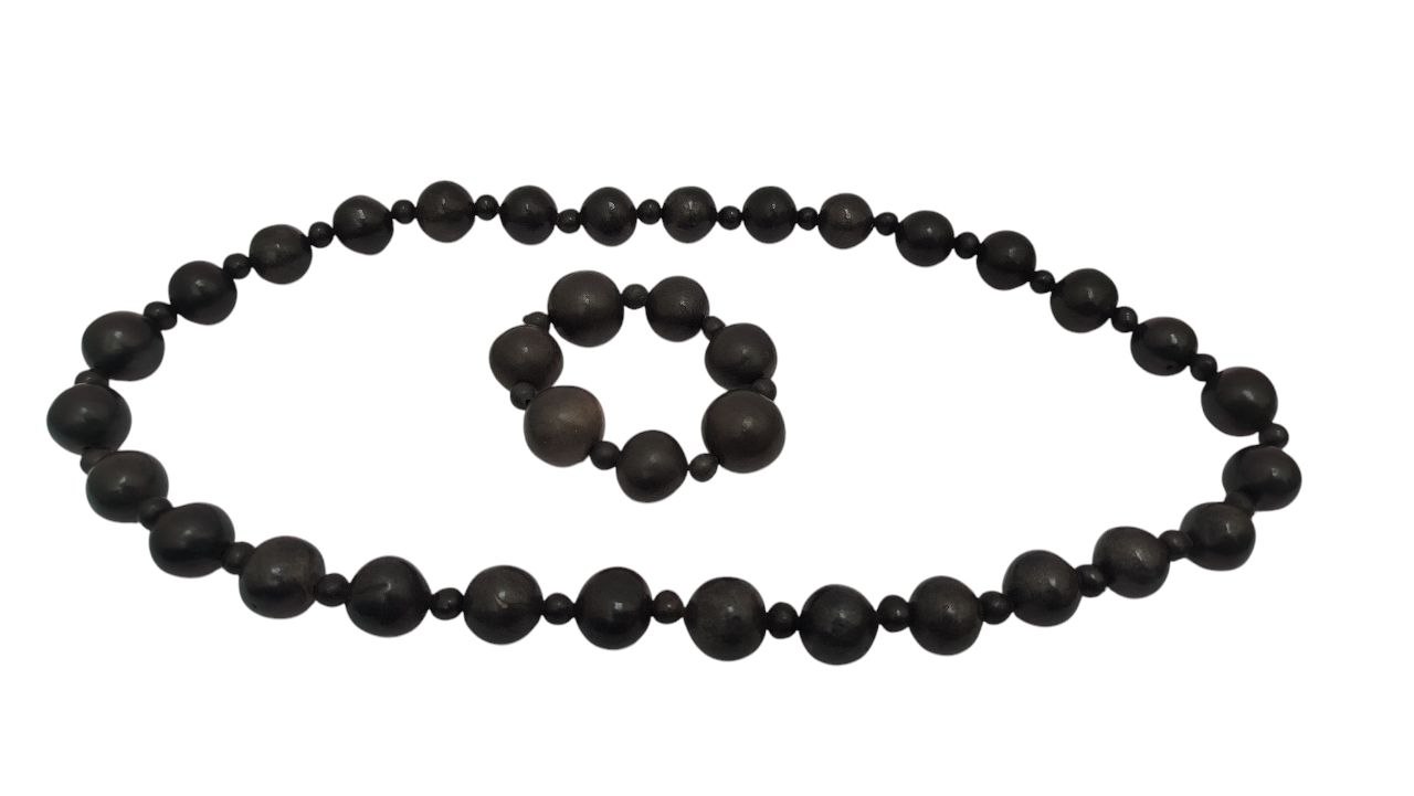 COLLAR & PULSERA DE PERLAS ARTESANALES DE BARRO NEGRO , RUSTICO, CON ELÁSTICO, 30 CM LARGO. HECHO A MANO, OAXACA.