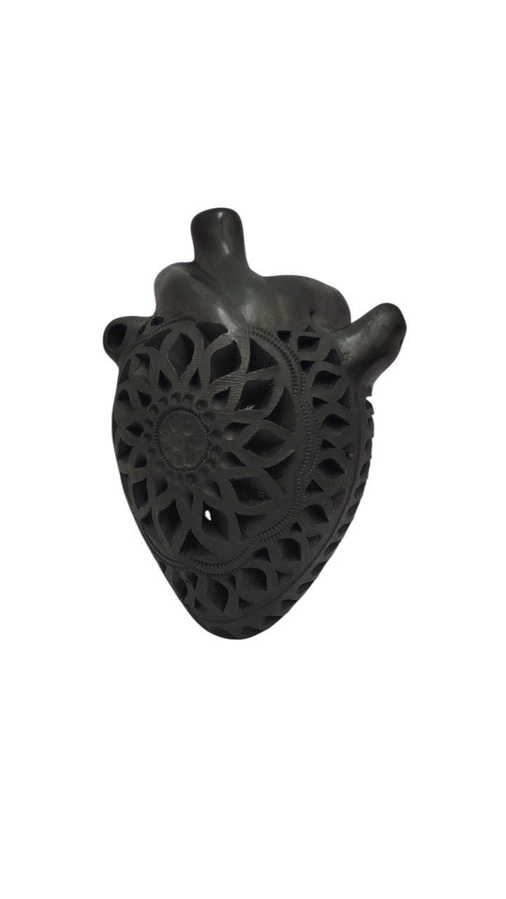 FIGURA DE CORAZÓN CON ARTERIAS CALADO, TERMINADO MATE DE BARRO NEGRO PARA DECORAR LA PARED, HECHO A MANO, (15 CM).