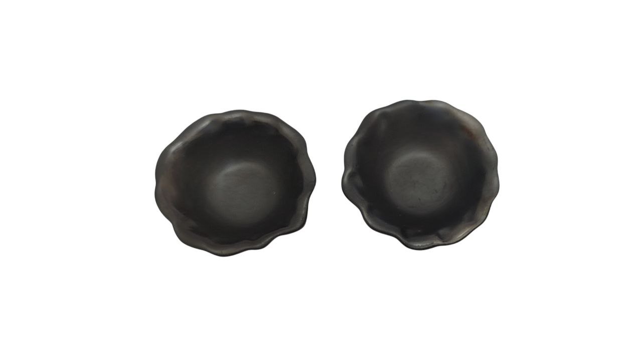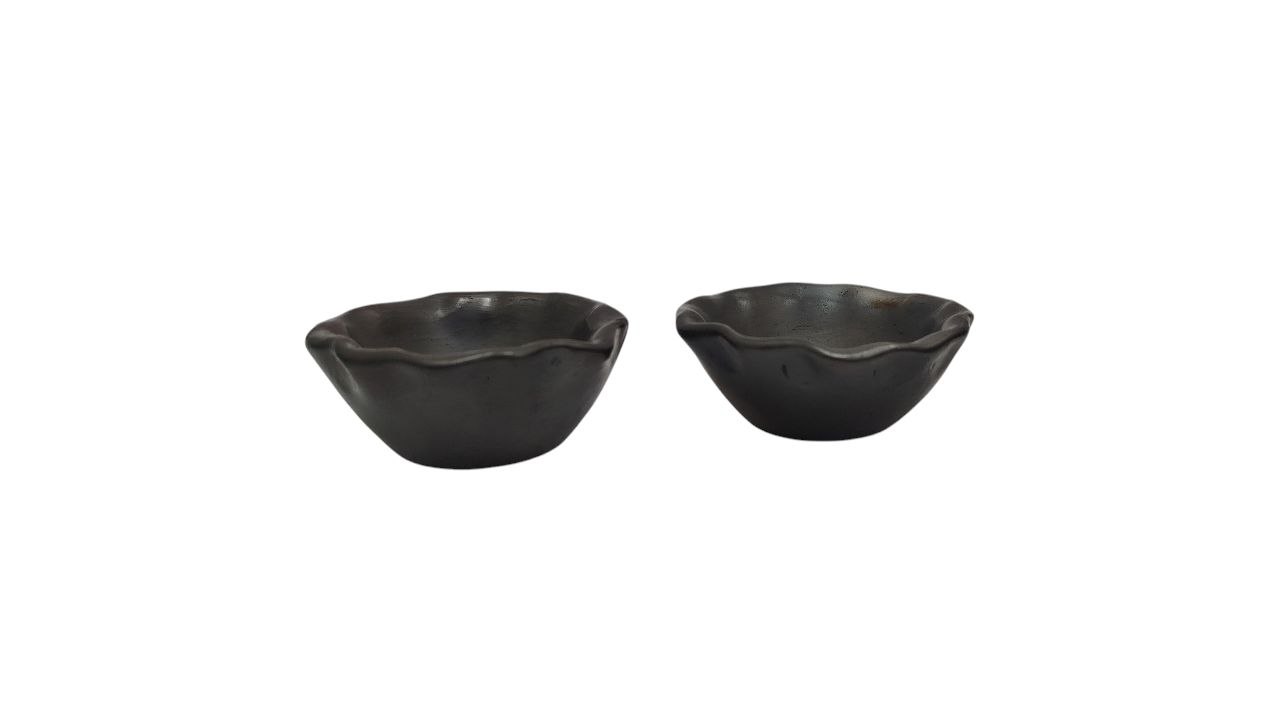 SALSERAS MINIATURA CON ORILLA ONDULADA DE BARRO NEGRO (7CM) , PARA DECORACION DE MESA, HECHA A MANO.