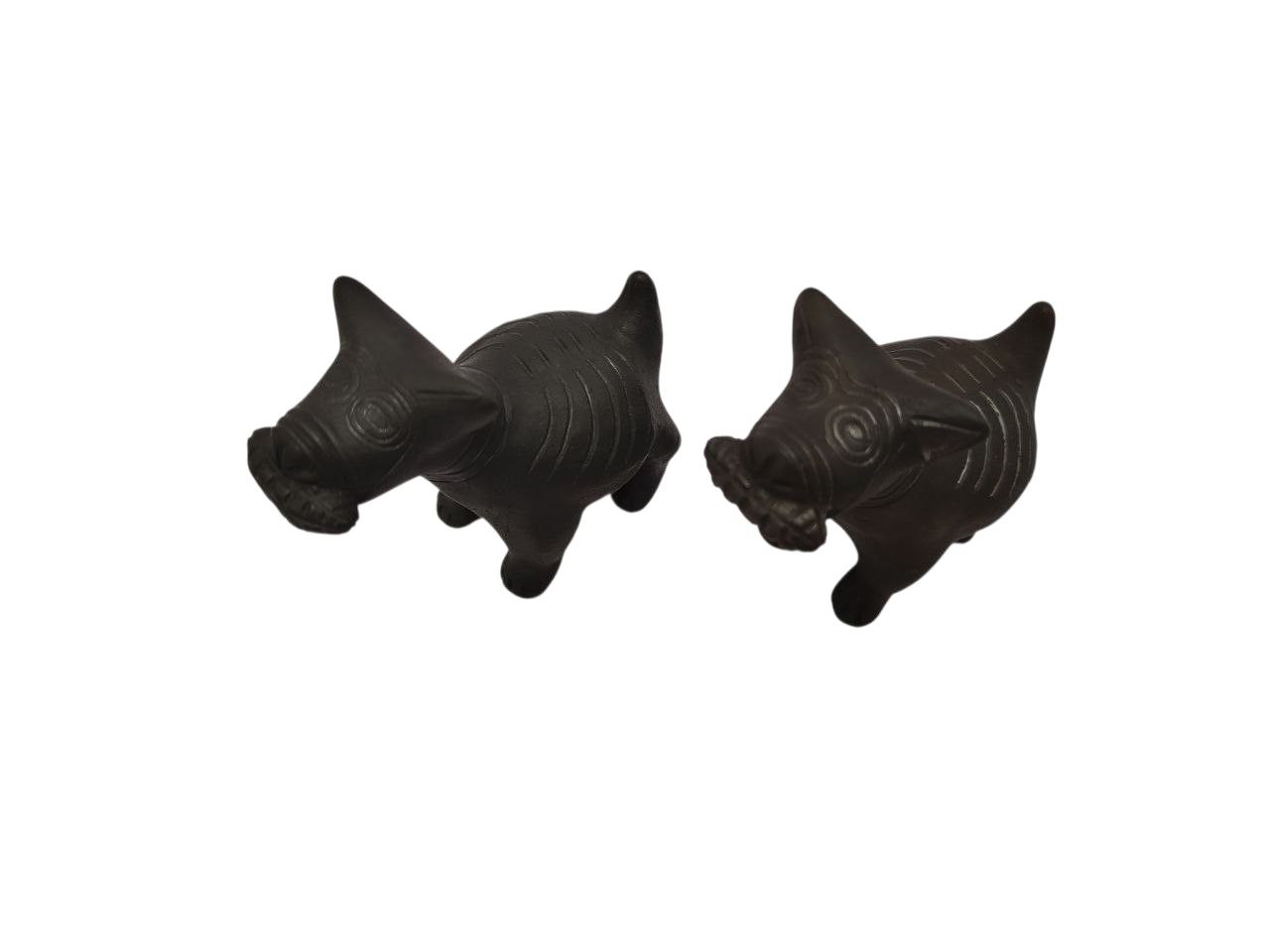 PAR DE FIGURAS ARTESANAL «XOLOITZCUINTLES» DE BARRO NEGRO HECHAS A MANO, DECORACION DE INTERIORES.