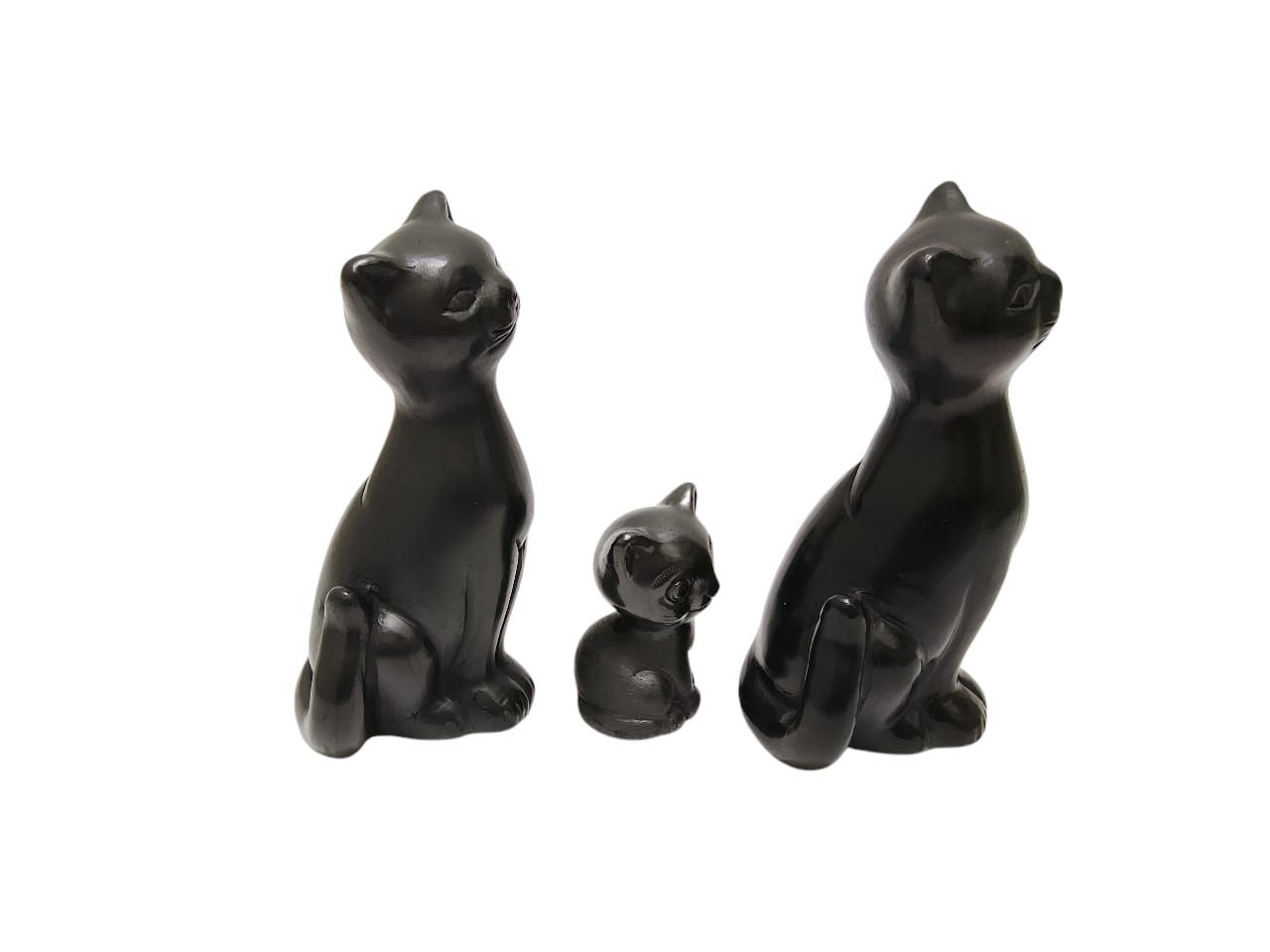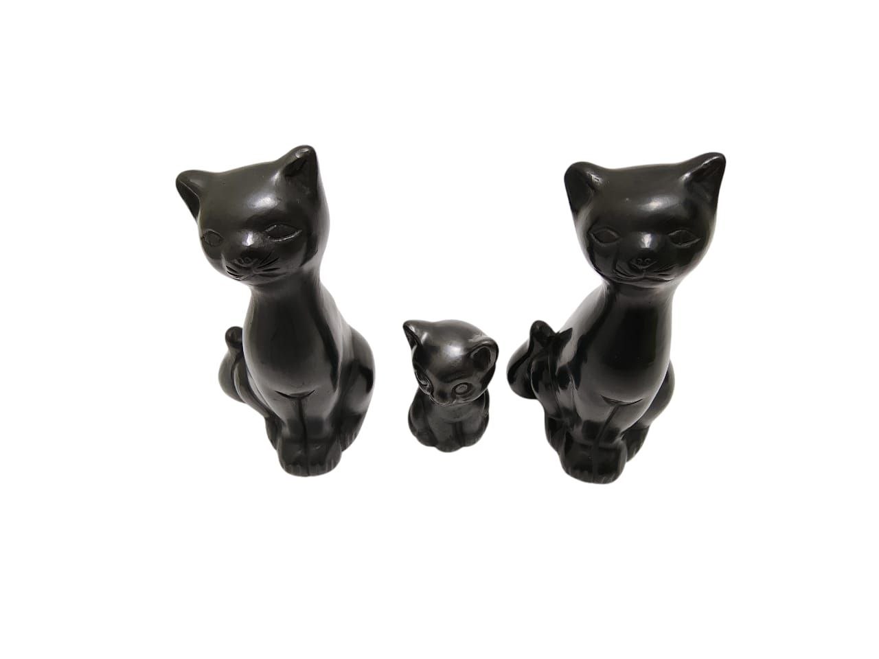 FAMILIA DE GATITOS, FIGURAS DE BARRO NEGRO DECORATIVA, HECHO A MANO.