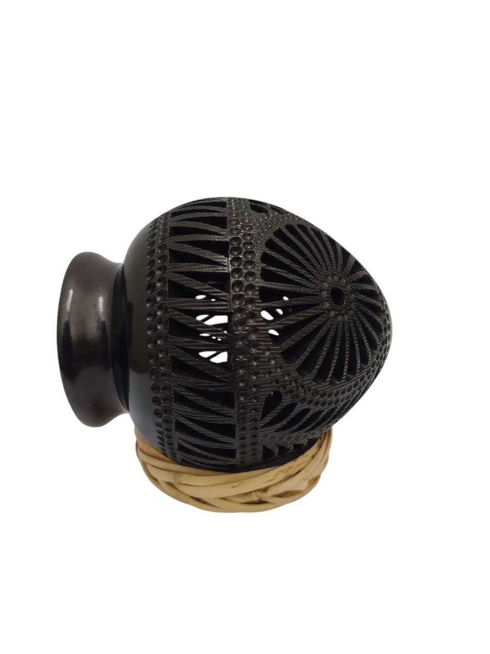 1 pieza de cántaro calado, hecho a mano. Pieza pequeña. Mide 13 cm de largo * 10 cm de ancho y llevan una base de carrizo para que la pieza pueda postrarse por si sola. Perfecta como decoración o como regalo mexicano, NO aptos para almacenar líquidos. Regalo ideal para viaje al extranjero. Increíble para decoración de interiores.