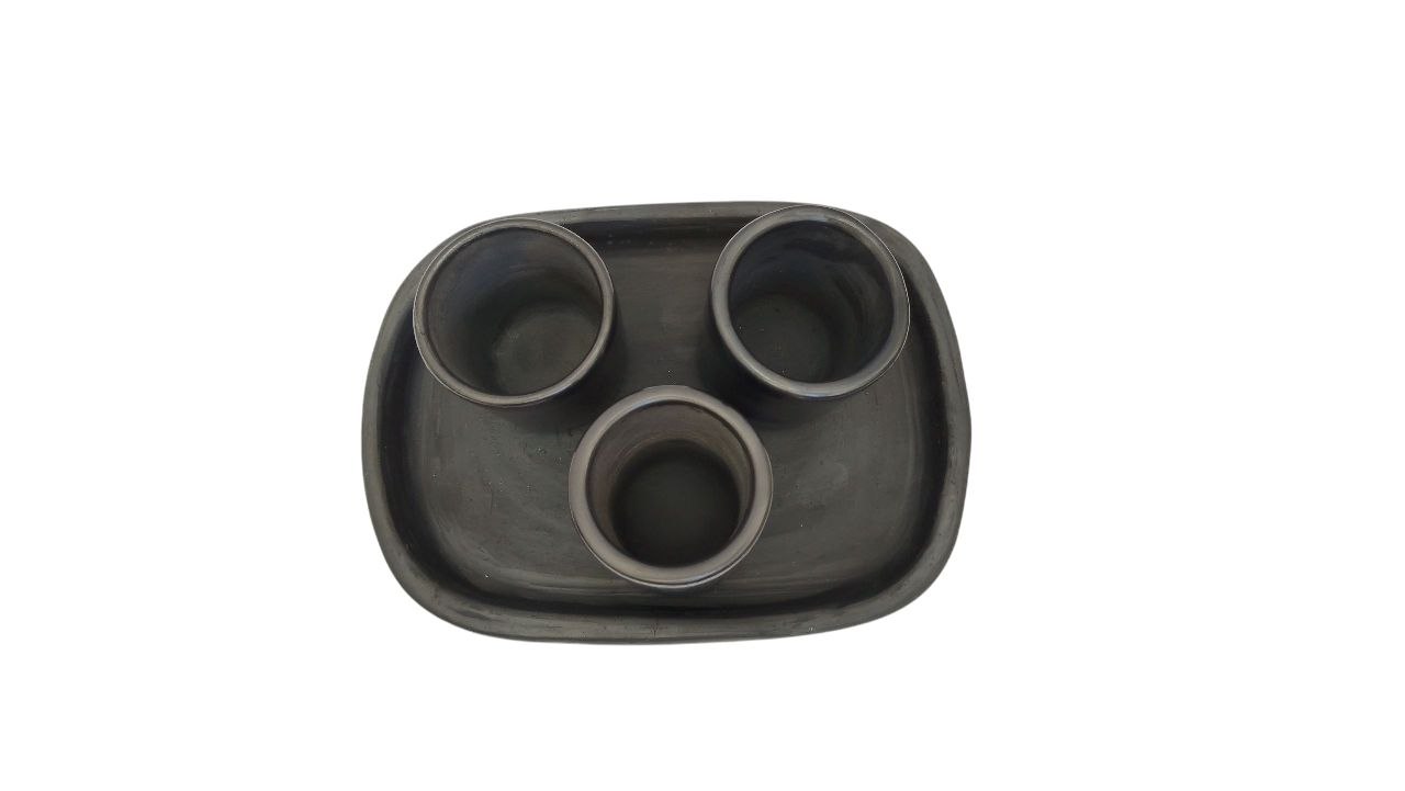 Muy linda charola ovalada de 18 cm para limones y 3 mezcaleros de barro negro pulido; Para decoras sus reuniones. CHAROLA 18CM *12 CM* 2 CM MEZCALERO 5 cm