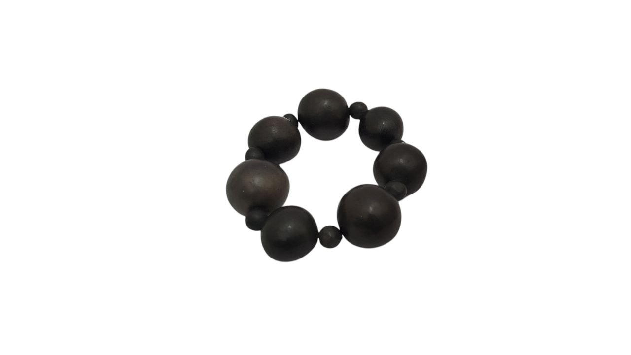 perlas de barro negro liso pulido, cada una mide 2 cm de ancho.