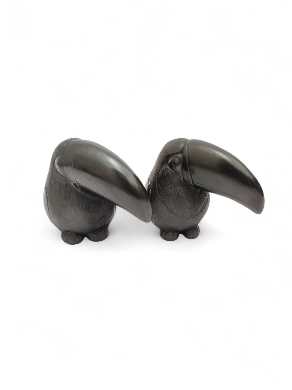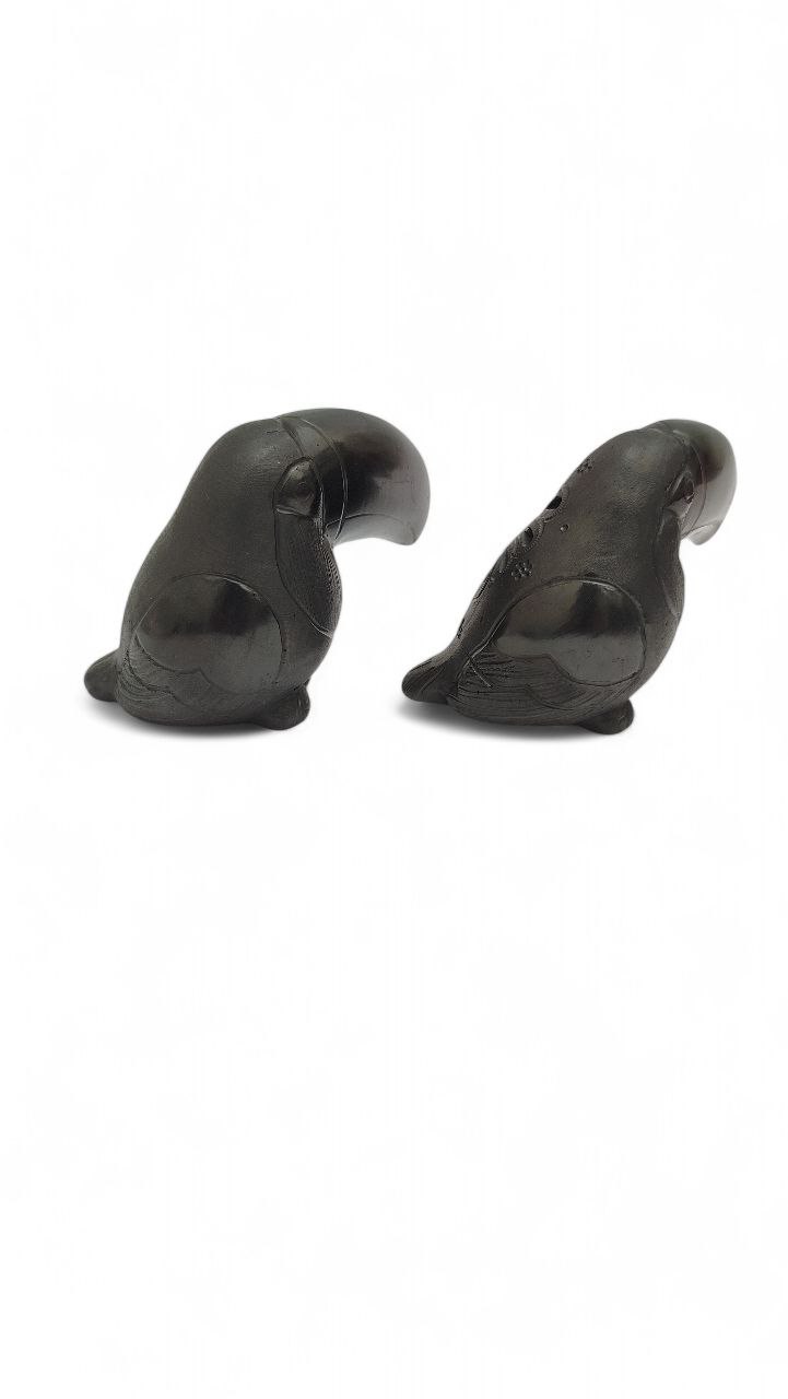 2 PEQUEÑAS FIGURAS DE PAJAROS TUCANES DE BARRO NEGRO, . HECHAS A MANO EN OAXACA. PIEZAS DE COLECCIÓN. MEDIDAS: 7 ALTO * 7.5CM DE LARGO(PICO) *5.5 CM DE ANCHO