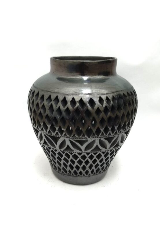 Sé el primero en valorar “JARRON ARTESANAL SENCILLO PARA ALMACENAMIENTO, DE BARRO NEGRO; CALADO UNICO DE (19 CM)”