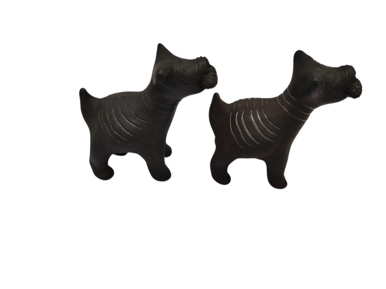 Lindo par de Xoloitzcuintles figuras de barro negro terminado mate para decoración de interiores.