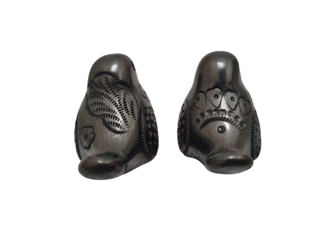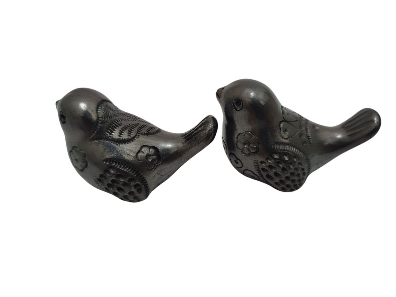 PAR DE LINDAS FIGURAS DE AVES, DECORATIVAS DE BARRO NEGRO (7CM), PIEZAS ARTESANALES HECHA A MANO.