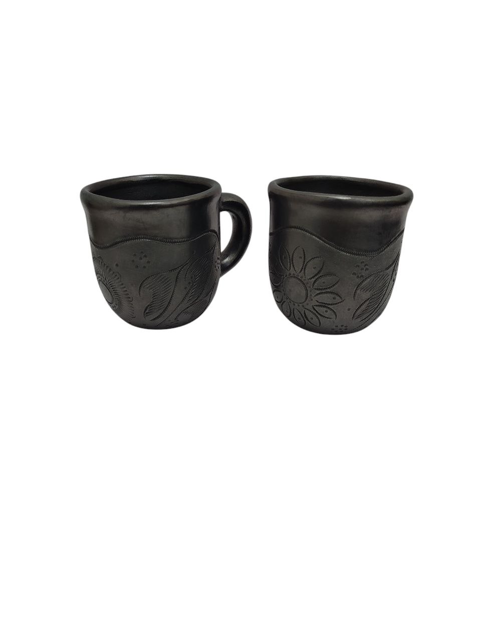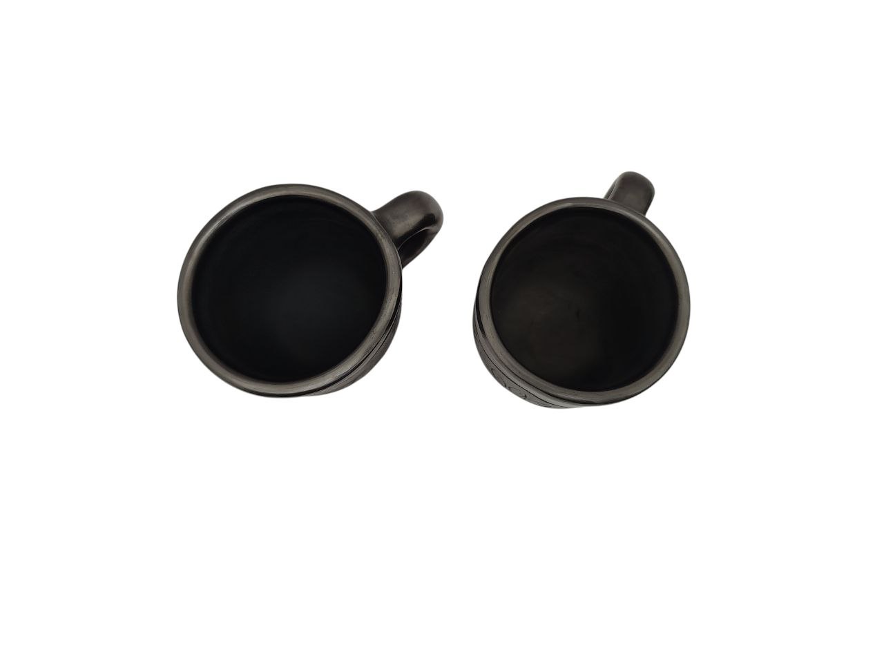 Completa tu vajilla con estas Dos lindas tazas artesanales de barro negro pulido, hechas a mano en Oaxaca, medidas de 8 cm de alto x 8 cm de diámetro.