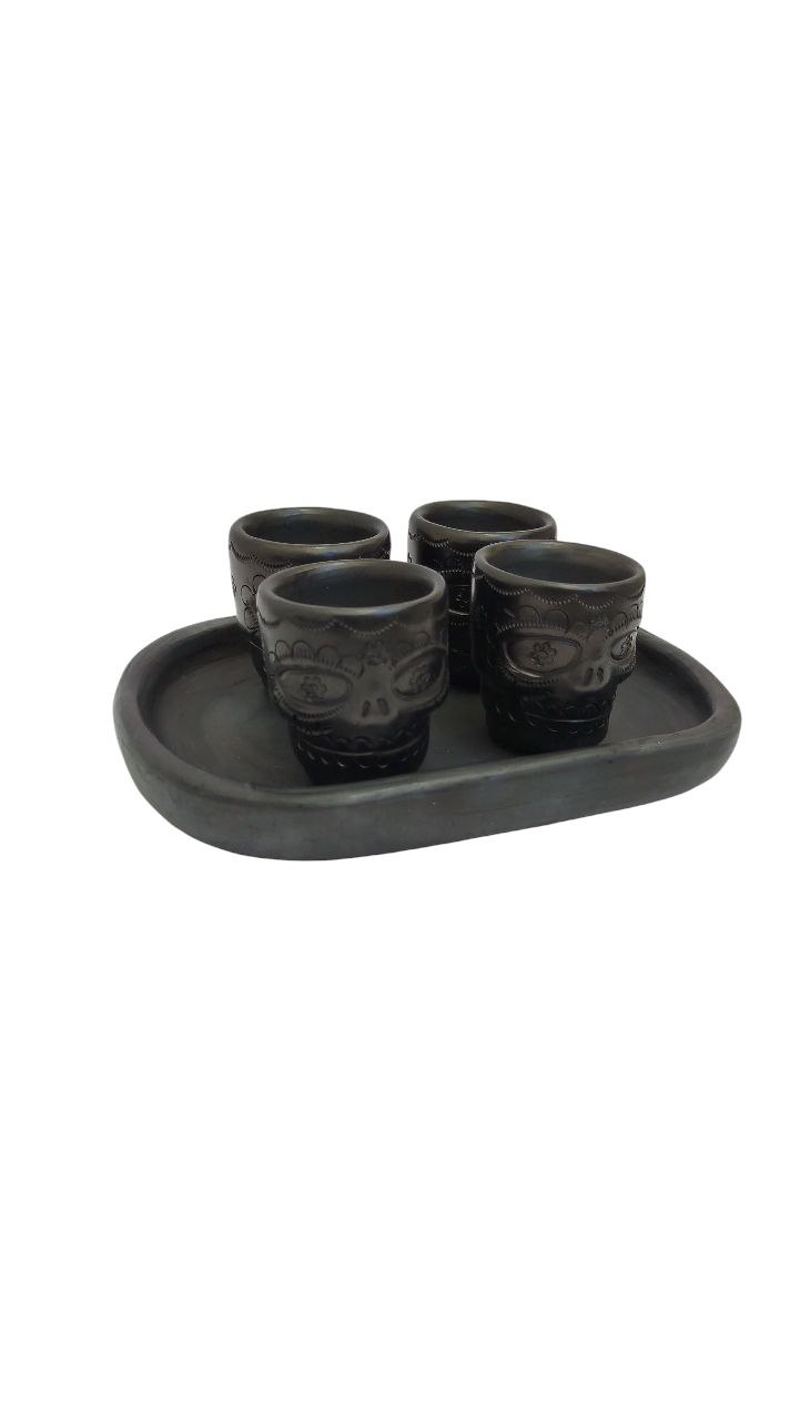 Muy linda charola ovalada de 18 cm para limones y 4 mezcaleros calavera de barro negro pulido; Para decoras sus reuniones. CHAROLA 18CM *12 CM* 2 CM MEZCALERO 5 cm