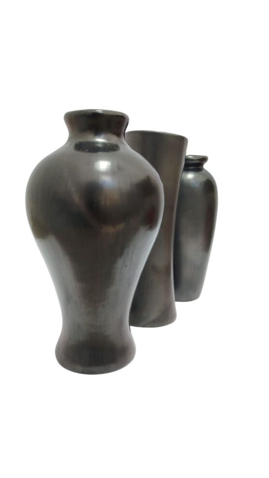 SET DE 3 FLOREROS PARA DECORARCION. (Izquierda a derecha) Florero 1: Alto:20cm , diametro de la parte mas ancha 10cm, diametro Base: 7cm Florero 2: Alto:19 cm, Boca: 7cm , Base:7 cm Florero 3: Alto: 18cm, diametro de la parte mas ancha: 7.5cm , Base:5.5cm