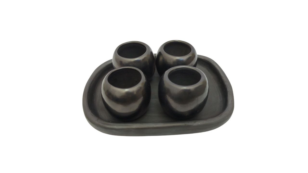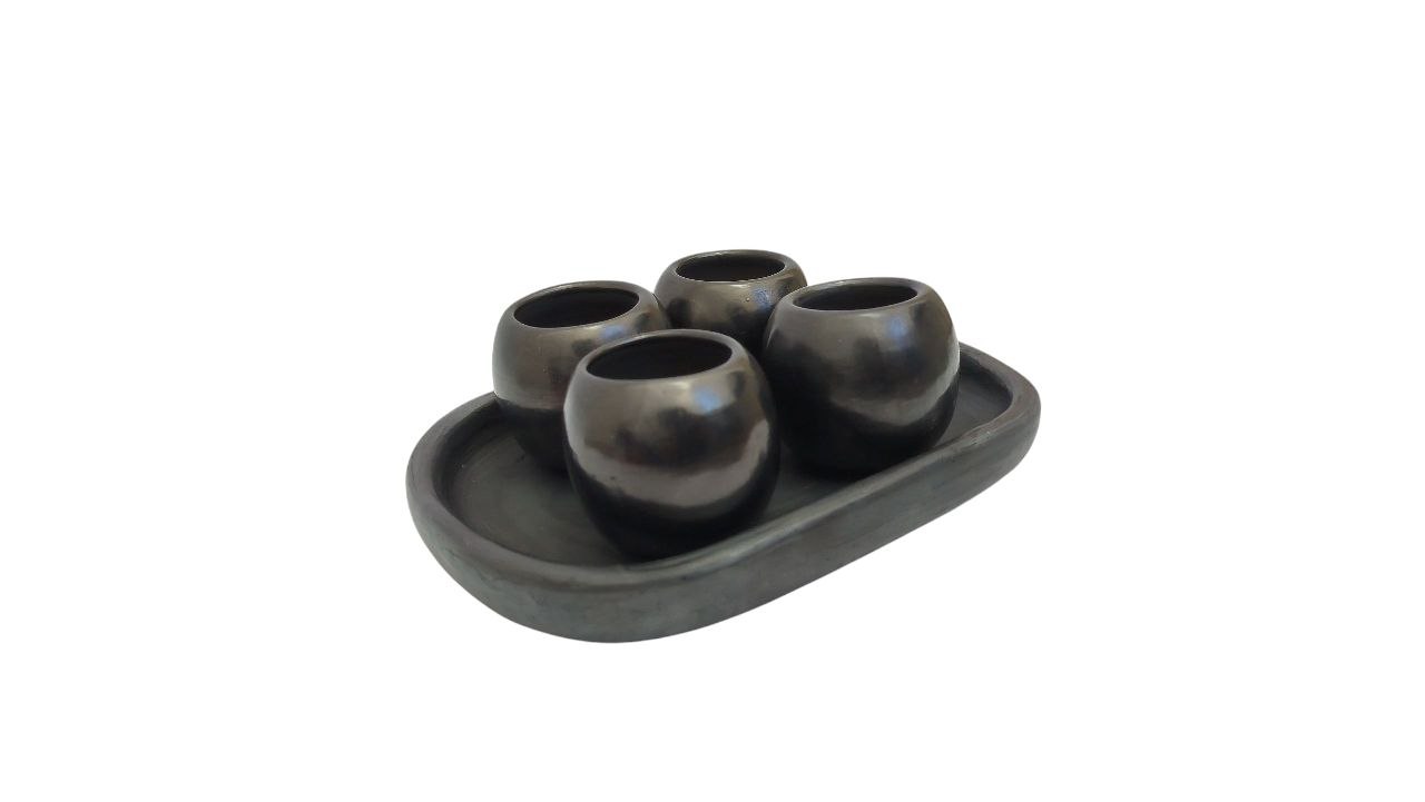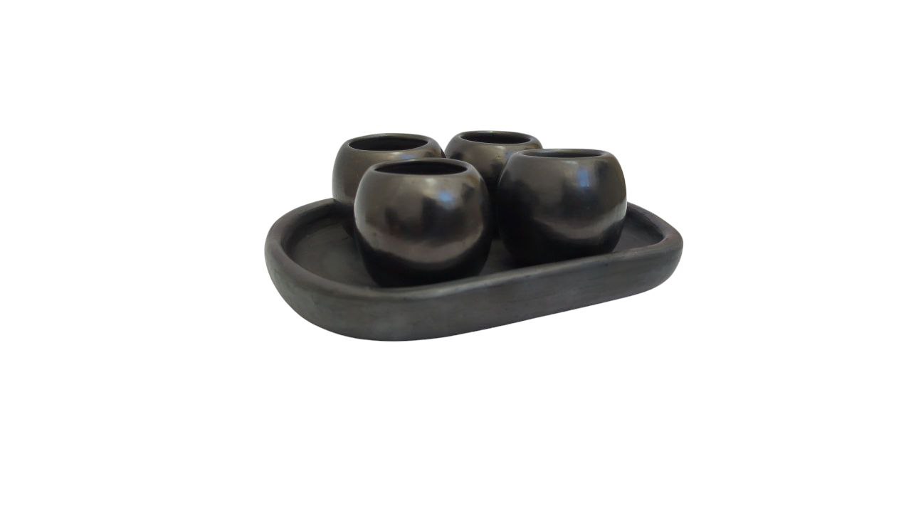 Muy linda charola ovalada de 18 cm para limones y 4 mezcaleros de barro negro pulido; Para decoras sus reuniones. CHAROLA 18CM *12 CM* 2 CM MEZCALERO 5 cm