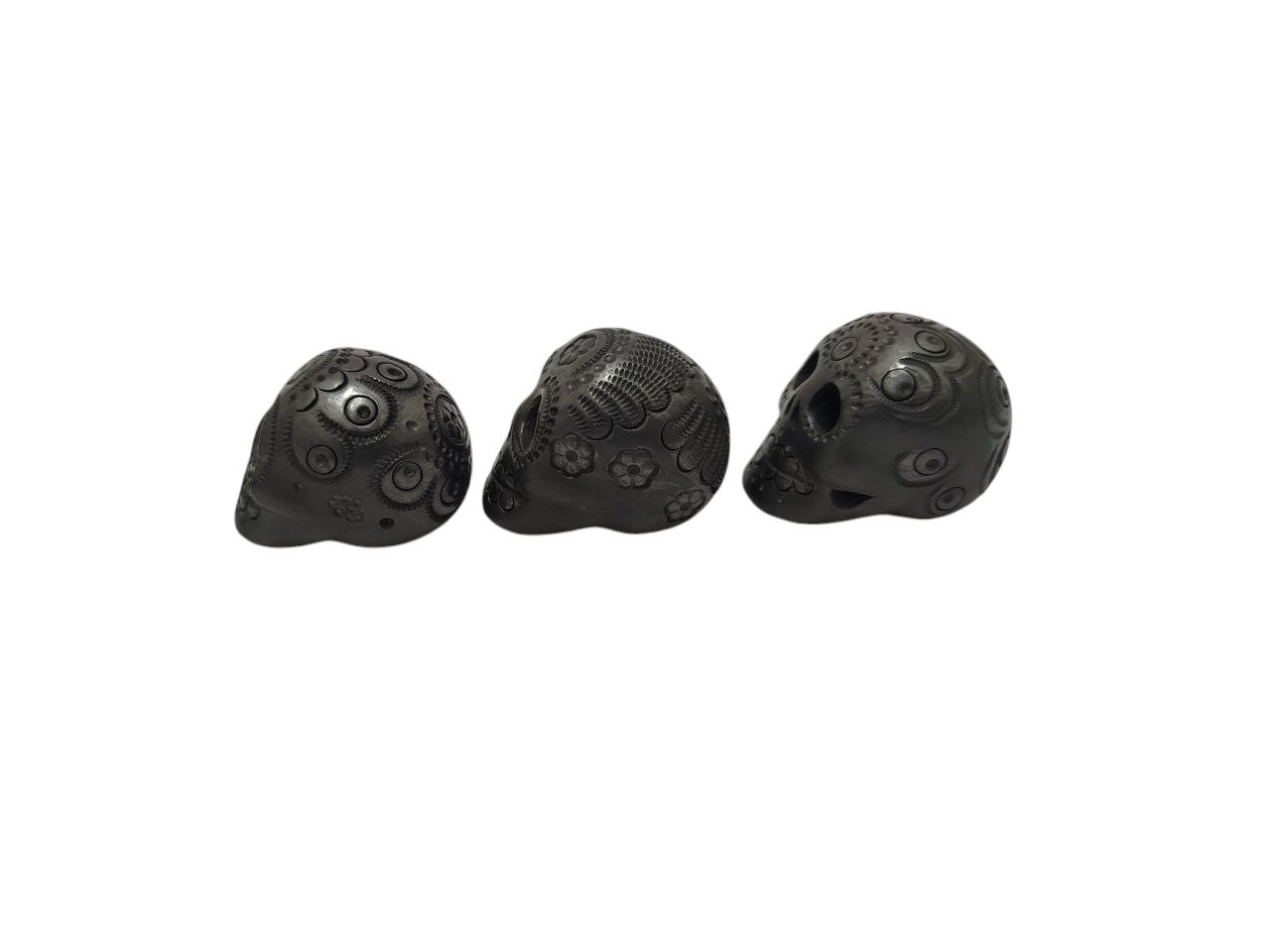 SET DE CALAVERAS DE BARRO NEGRO DE 3.5cm LINDAS PARA DECORAR CUALQUIEN ESTANCIA. LOS CALADOS PUEDEN VARIAR MUY LEVEMENTE PEDENDIENDO EL STOCK.